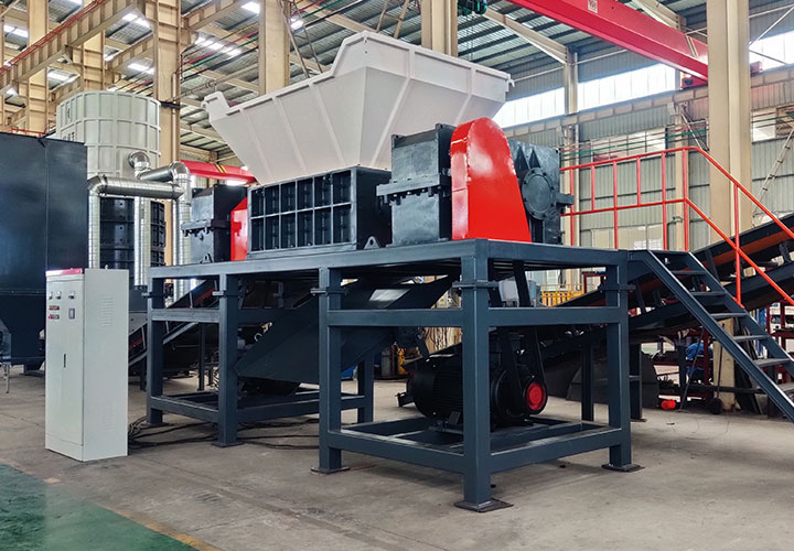 破碎線主機殼體采用特厚鋼板制造,內襯為高錳鑄鋼件,可更換;主機轉子盤安裝于水平軸上,轉子盤圓周分布有銷軸,軸向懸有錘頭;主軸用滾珠軸承支撐,循環油強制潤滑冷卻,并裝有溫度傳感器;進料口裝有液壓輥筒喂料裝置,位置一高一低,同向旋轉,能將大件松散物料壓扁,送入破碎腔內。